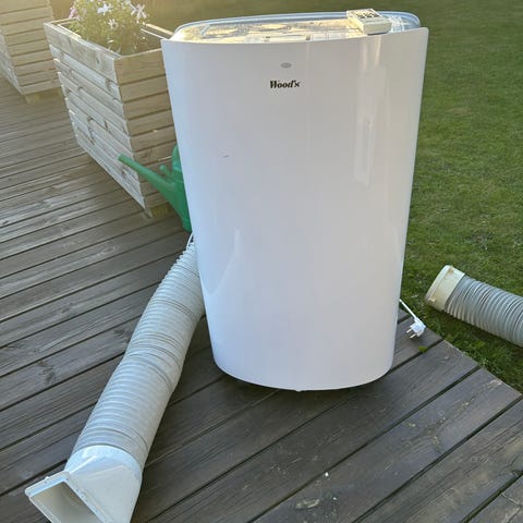 Portabel AC från Matsui, modell MAT-805C3 på 9000 BTU i vit färg. Har digital display, flera knappar för inställningar och slang för varmluft.fungerR utmärkt, mycket kreaftig