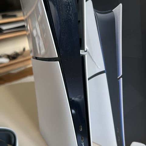 Sony Playstation 5 Digital Edition med 1TB. 2st trådlösa DualSense-handkontroller medföljer samt en laddstation till kontrollerna.