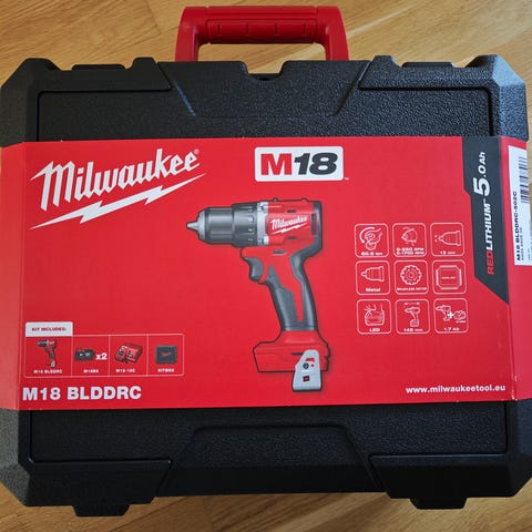 Milwaukee M18 BLIDRC slagskruvdragare 18V i röd/svart med gummerat handtag och bälteskrok. Har snabbchuck för bits och reglage på sidan. Har fem stycken och säljs för paketpris 6000 kronor. 2200 kronor styck på marknaden för tillfället.