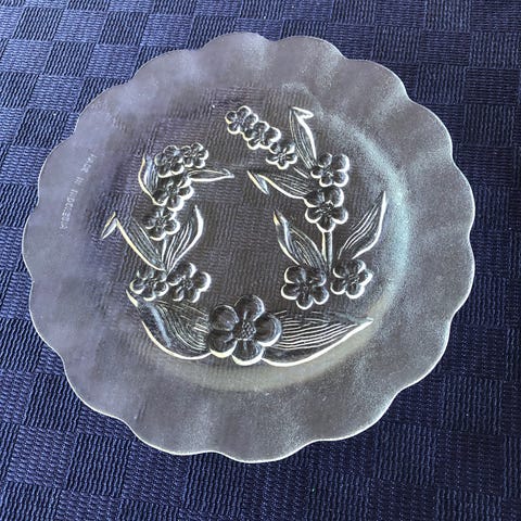 Ny Oanv 9 stycken FROSTIGT GLAS TALLRIKER med motiv av blommor