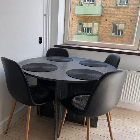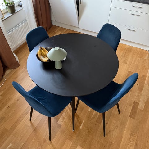 Matgrupp med 4st stolar i konstläder och svart matbord (mio)