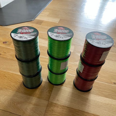 Mörka linan märkt PT 9/10 S5/S6 väger 32g ca: 11m lång . Ögla fram och egen gjord ögla bak. 200:-