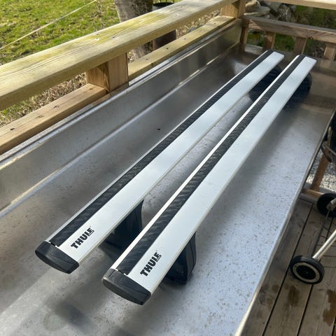 Takräcke Evo från Thule med tillhörande fästen och nycklar. Fästen 710600, har suttit på KIA e-niro 2021.