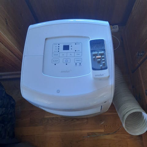 En mindre effektiv avfuktare som stått i litet utrymme i källaren . Fungerar fint. Köpt på Jula. Tekniska specifikationer se bild