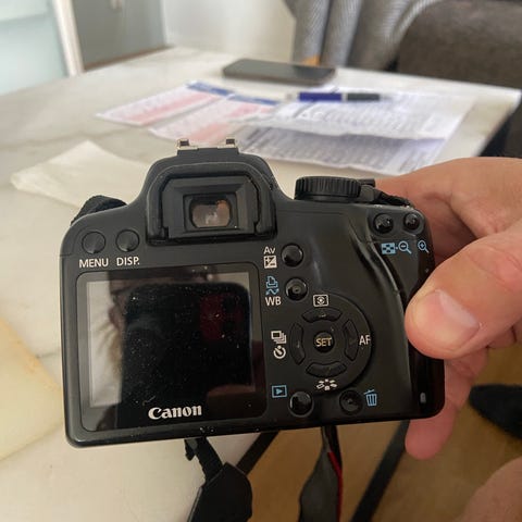 Canon EOS 400D systemkamera med objektiv 18–55mm och blixt