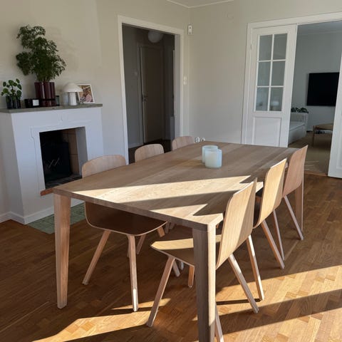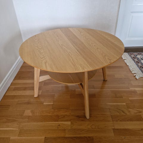 Säljer Bolia Fusion matbord i vitoljad massiv ek, designat av Michael H. Nielsen för Bolia. Bordet har en rund skiva med diameter 110 cm. Tillverkat av FSC-certifierat ekträ i Europa.
