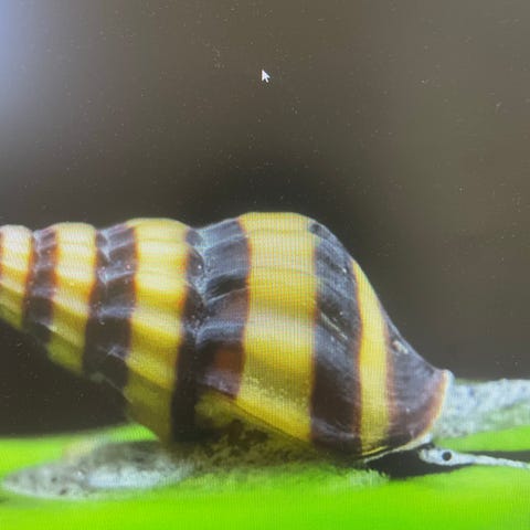 Stor landsnäcka som trivs i terrarium, med ljust hus med mörkare mönster. Rör sig lugnt på botten och är lätt att mata och titta på. Gillar att bli burna bra djur att ha för dem som inte har lika mycket tid men bara vill ha sällskap säljs till ett bra hem💕