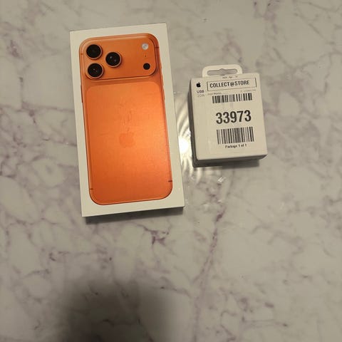 Säljer en Apple iPhone 17 Pro Max med 256 GB lagring i orange färg. Stor skärm och trippelkamera på baksidan, snygg färg som sticker ut. Helt ny i oöppnad kartong! Kvitto finns. Har inte bråttom med att sälja den, minsta prutmån blockar jag