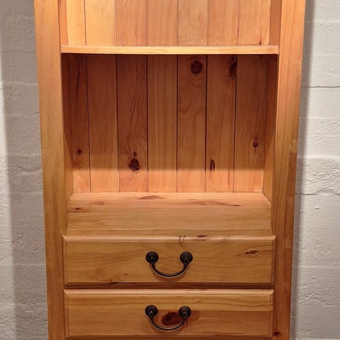Vitrinskåp / hörnskåp i fur/gran mått 26,5x26,5x 63cm i fint skick.