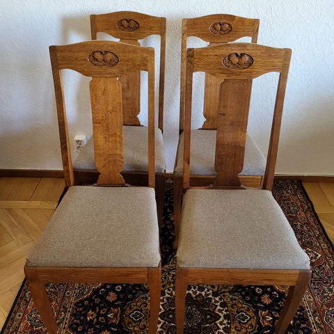 4 st traditionella äpplestor i massivt trä med lädersitsar.