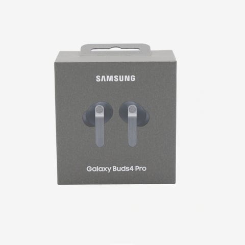 Samsung Galaxy Buds3 Pro true wireless-hörlurar med laddningsetui. Snygg svart förpackning med bild på hörlurarna och tydlig Samsung-logga.