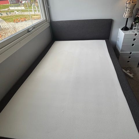 Gedigen grafitgrå säng för den långa personen (2,10m) säljes pga flytt. Mycket gott skick. Hämtas hos säljaren.