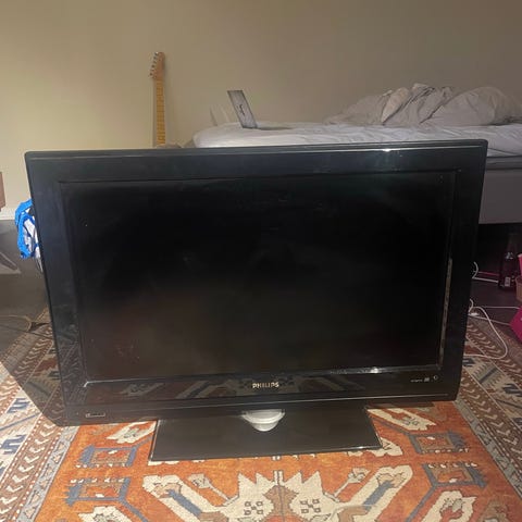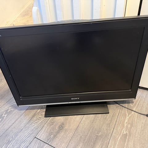 Äldre Sony KDL-32W5500 LCD-TV på 32 tum. Fjärrkontroll och strömkabel.