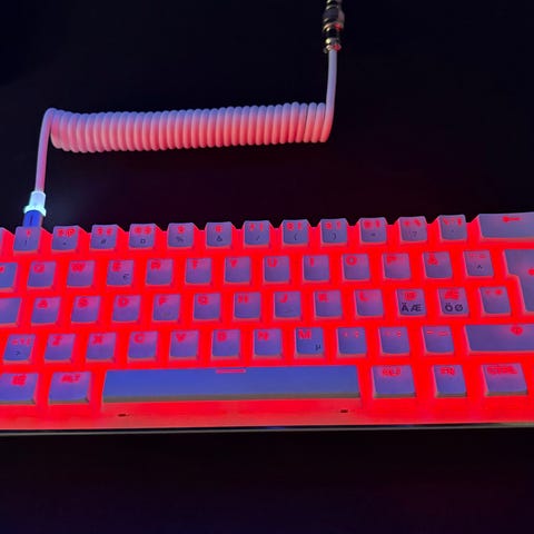 Design: Compact 68-key layout in "Spring White." Features 16M color RGB lighting and a signature "Air" lightbar on the front.