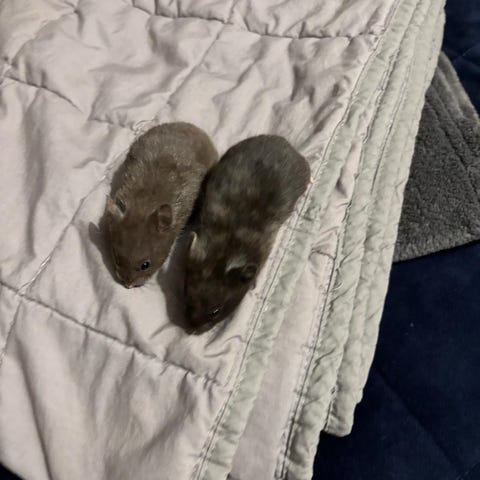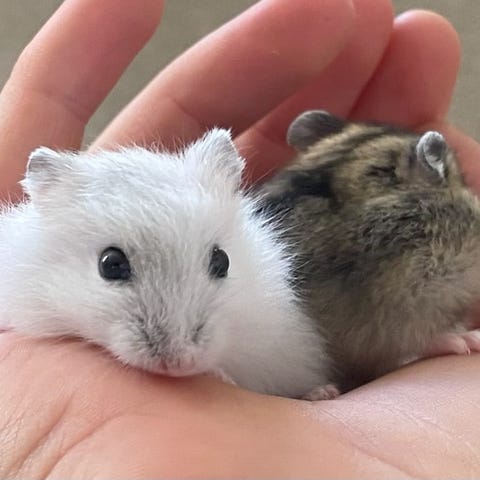 2 super gulliga dvärghamstrar till salu tillsammans med bur och tillbehör såsom hjul till båda, små matskålar, leksaker osv skriv privat för mera bilder på buren och mer info