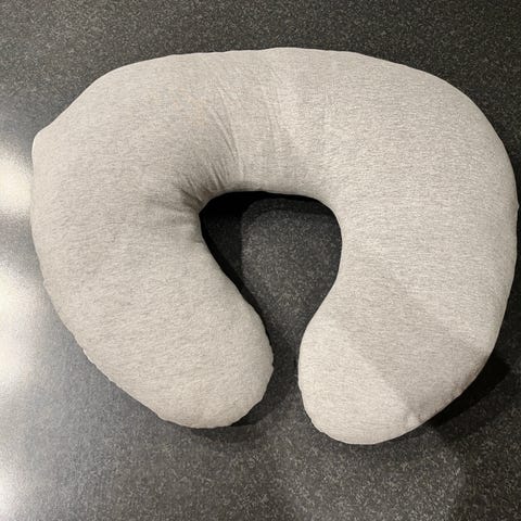 Mjuk U-formad gravidkudde i grått som ger bra stöd runt hela kroppen. Överdrag i mjukt tyg som känns skönt mot huden.