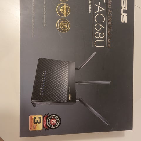 Asus RT-N12+ Wireless-N300 Wi-Fi-router med två antenner och flera LAN-portar på baksidan. Levereras i originalkartong med nätadapter och nätverkskabel enligt bilderna.