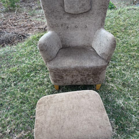 (Beige fåtölj å puffar)