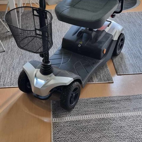 Fin trehjulig promenadscooter som är smidig att använda där det inte finns så mycket utrymme