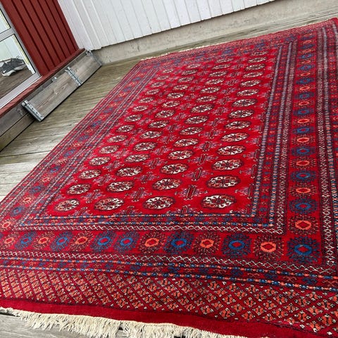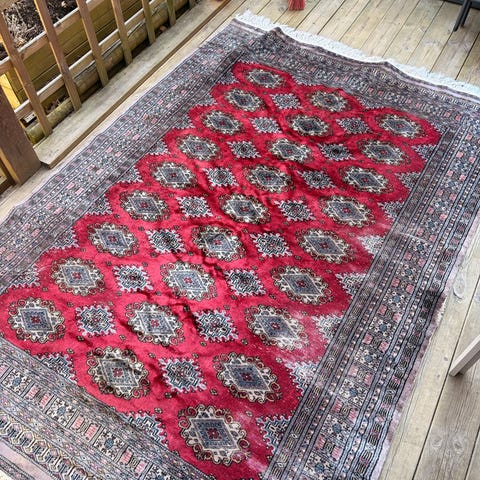 Fransar sliten på ena hörnet och små lätta fläckar på samma sida (se bilder)