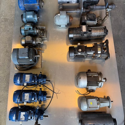 Två lika Asea motorer 11kw 2pol 400v och en pump med okänd funktion. 300 kr Styck.