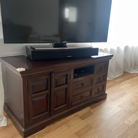 Tv bänk, stor bokhylla och en liten bokhylla i mörkt trä inköpt från en möbelaffär runt 2010. Allt i fint skick och samma serie.