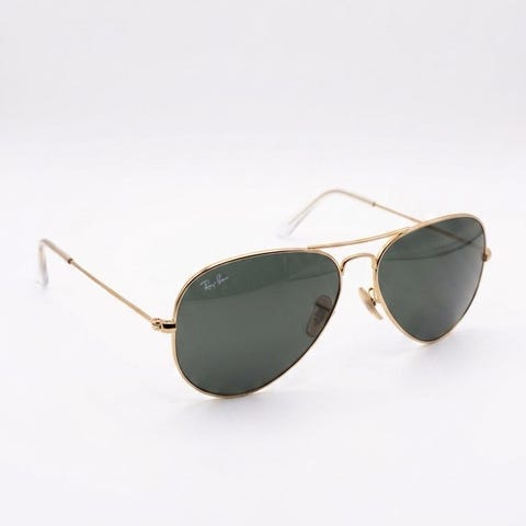 Tidlösa och klassiska Ray-Ban Aviator i guldram med mörkgröna G-15 mineralglas. Ursprungligen designade för amerikanska piloter 1937 (Flight Sunglasses) och än idag ett av världens mest ikoniska solglasögon. Lätt metallbåge med dubbelbygel och justerbara näskuddar.