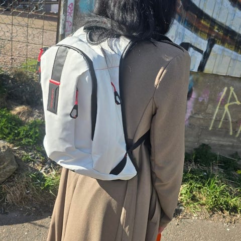 PRET-polyester: Ryggsäckens yttermaterial är tillverkat av 16 återvunna 0,5-flaskor.