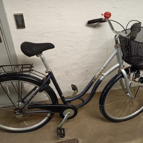 3-växlad japansk kvalitetscykel med 28 tums hjul och Yamaha mittmotor. Saknar tyvärr batteri, men rullar på bra och fungerar utmärkt att cykla på även utan eldrift.