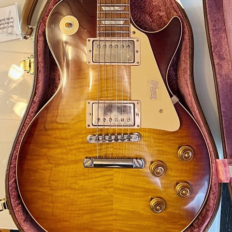 En Gibson Les Paul Faded Standard från 2022 som köptes ny för 2-3 mån sedan i mycket bra skick, det enda som finns är ett litet märke på baksidan efter gitarrställ men i övrigt dingfri.