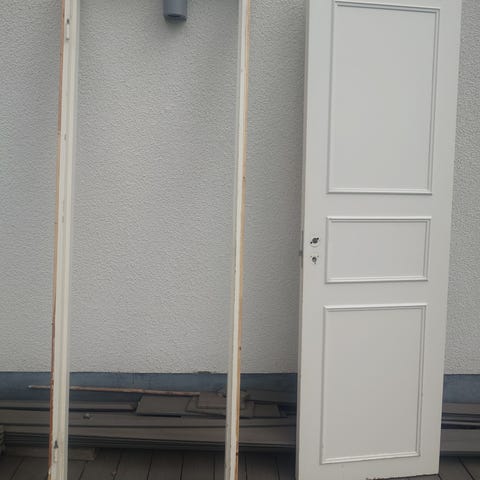 Två vita innerdörrar med gångjärn och handtag. Passar bra om du vill byta ut eller komplettera befintliga dörrar i huset. Mått dörrbladen är 59,5 x 195 cm. 150kr/dörr