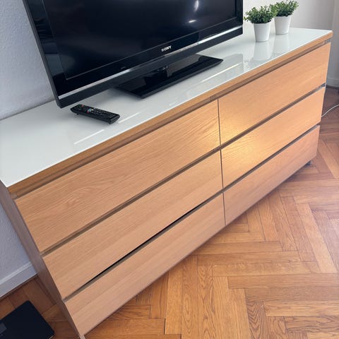 Sideboard / tv-bänk i teak och vitt