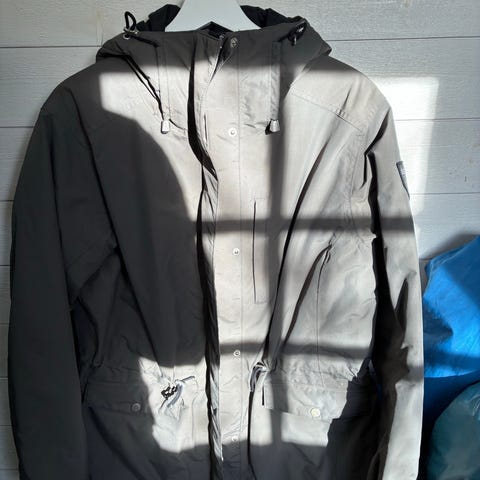 Jackan är i okej skick i sin helhet, men den har en liten skada på vänster arm bak (se bild)