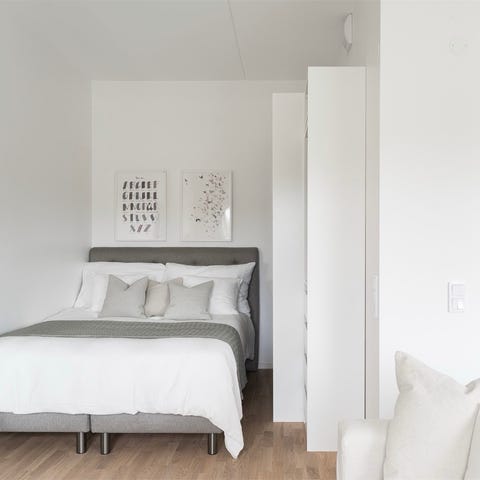Fristående gavel klädd med linne och djuphäftade klädda knappar. Skapa hotellkänsla i sovrummet med en djuphäftad sänggavel i finaste linne.