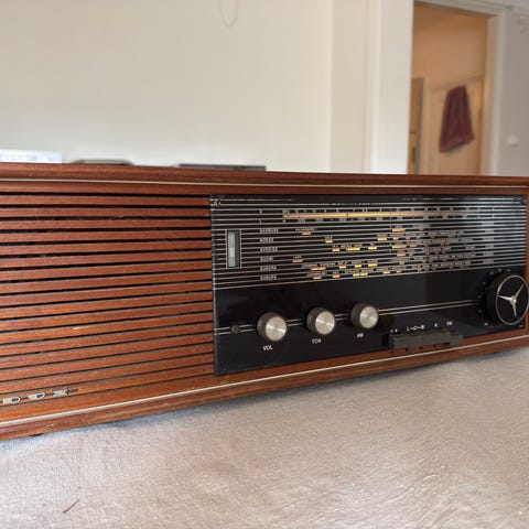 Bang & Olufsen Beomaster 900 K FM-radio i rosenträ från 1969 med inbyggda högtalare och inbyggd FM-antenn. Brasilianskt rosenträfodral i fint skick, ena högtalaren viss defekt.