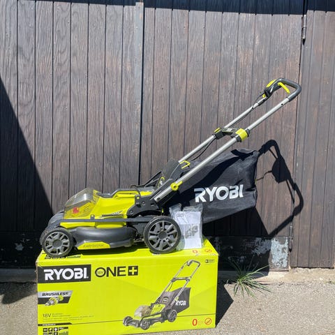 Ryobi batteridriven gräsklippare 36V med uppsamlare säljes. Har höjdjustering och bekvämt handtag, funkar bra i lite högre gräs också. Ett 6,0 ah + ett 8,0 ah med laddare ingår. Använd en säsong. Ny kniv installerad