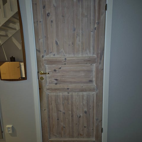 Tre st Swedoor, massiva innerdörrar i furu med tre speglar och synlig träådring. Utan karmar, se bilder. Har handtag och lås monterade. Små skavanker men i bra skick. Ej behandlade. Mått 83x203,5 cm