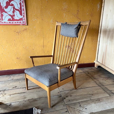 Stabil Svensktillverkad fåtölj " Bjärnum möbelfabrik" Färg-grön.