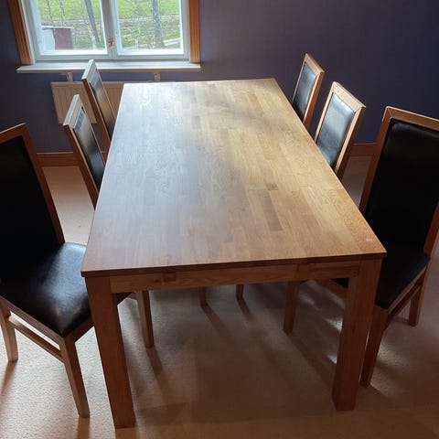 Mycket fint skick -sparsamt använt i matsalen. Bordet har ilägg med stenskivor i svart som dekor samt för varma kärl.