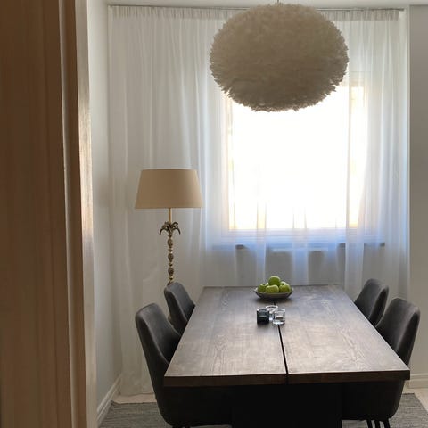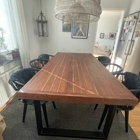 Själva bordet är byggt av en snickare och målade med hårdvaxolja. Finns mer att förbättra med.
