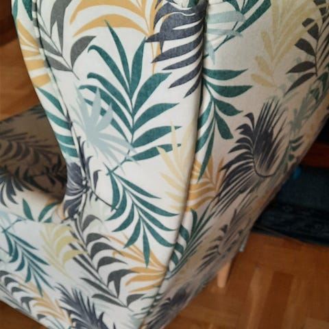 Skön fåtölj i serien Vimle från Ikea. Tyget är Hallarp beige men finns annat möbeltyg att köpa på Ikea. Armstöden är helt nya och stommen är ca 2 år.