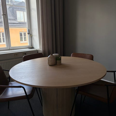 Säljer nu detta fina och varsamt använda Mio Cord matbord i ek med ett helt oanvänt iläggsskiva.