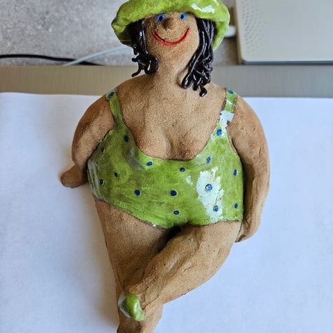 Keramikfigur sittande kvinna