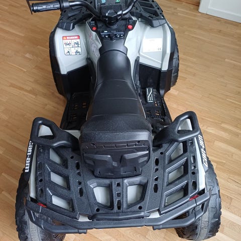 En rejäl el-fyrhjuling för barn, perfekt att köra ute med. Den är stor och tung och av mycket god kvalitet, laddare medföljer. Rejäla däck i gummi (inte hårdplast) Kör snabbare än gemene elbil för barn.