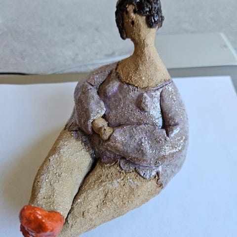 Fin keramikfigur föreställande en kvinna i grönprickig baddräkt och matchande hatt. Rolig inredningsdetalj. 14 cm hög