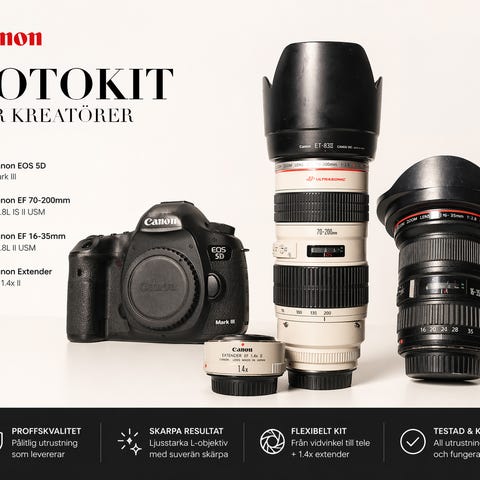 Säljer delar av min Canon EF-utrustning då de inte används. Samtliga objektiv är väl omhändertagna, fungerar som de ska och har förvarats torrt. Passar både Canon EF-kameror och RF-system via adapter.