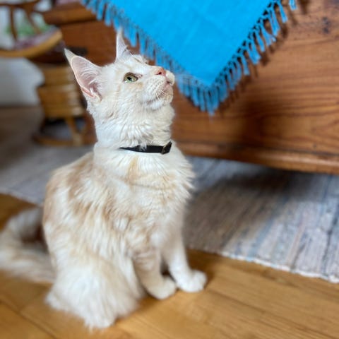 Avmaskad, fertil, gosig, van vid andra katter och vardagsljud.