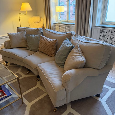 Säljer en mycket fin fåtölj från Englesson (Nypris ca 15000 kr) Howard Slim är Englessons populära serie med klassiskt och tidlöst formspråk. De rundade armstöden och generösa stoppningen gör att serien har en mycket bekväm komfort. Howard är elegant och passar i många olika hem. En riktigt skön klassisk fåtölj. Tillhörande fotpall (nypris ca 7000 kr lägger jag med på köpet). Pallens mått är: bredd: 78 cm djup: 45 cm.