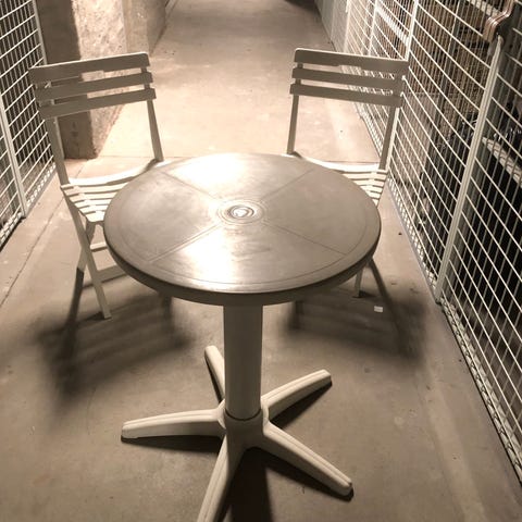 Betongbord + två stolar inkl dynor