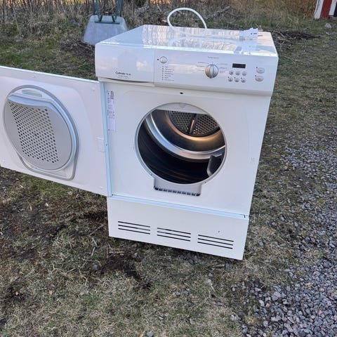 Electrolux torktumlare T5130C med 6 kg kapacitet och 400 V anslutning. Enkel panel och tydlig märkplåt med alla specifikationer på sidan.